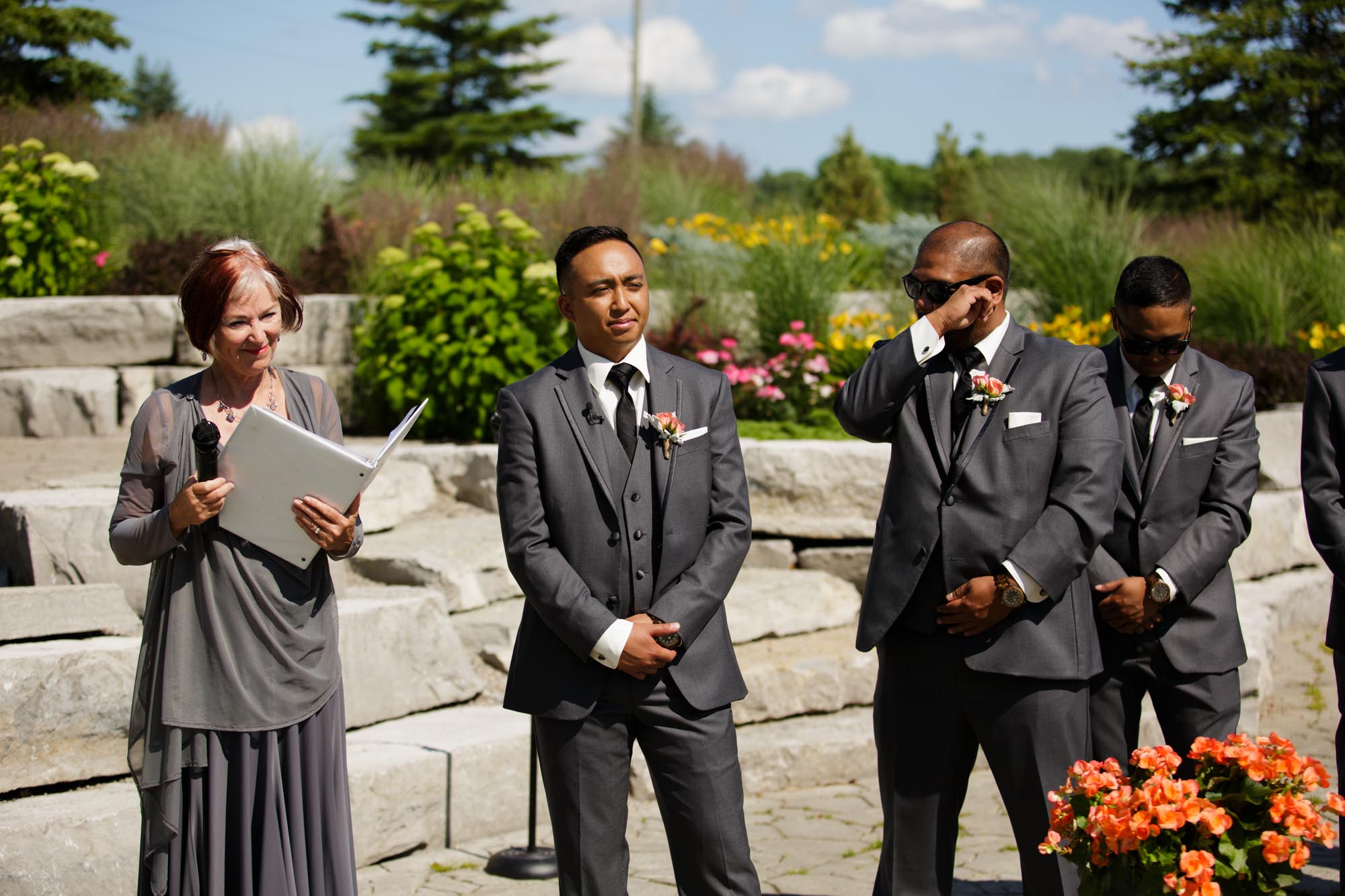 Once we finished capturing moments with the stunning bride and lovely ladies, we drove over to Hawk Ridge Golf Course in Orillia to set up for the ceremony. Amie + Dan professed their love with personalized vows and were pronounced husband and wife in an outdoor ceremony by the waterfall. After a fun creative session with the family and bridal party, it was time for the reception. Amie + Dan entered the room and immediately went into their choreographed first dance. Dinner was sprinkled with sweet speeches from family members, followed by parent dances and the traditional Filipino money dance. Then, it was time to dance the night away!