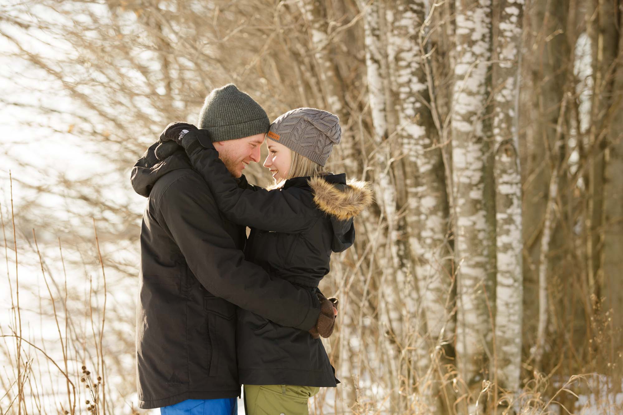 On a perfect wintry day in January, we met up with Leslie + Alex at their home–a picturesque working dairy farm just north of Barrie. Although we could hear the cows mooing in the distance, we decided (since the weather was just below freezing), we would let the cows stay cozy and warm in their barn, while we explored the property. Leslie + Alex have known each other since grade school and have been together for years. They decided the time was right to tie the knot, and we were so delighted we were able to capture this special moment in time.