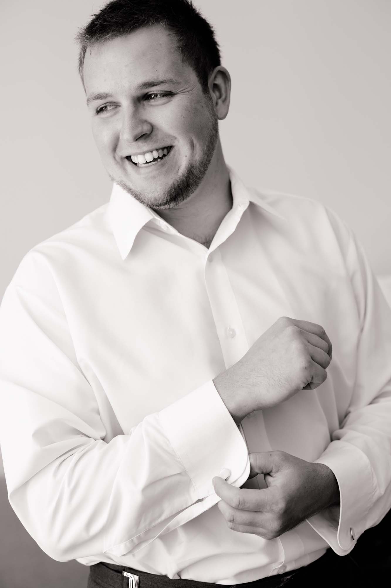 We left Claire and her entourage to finish dressing for the day, and traveled next door to see Craig. We captured Craig getting ready, as his groomsmen snacked on Oliver & Bonacini room service (full plates of prosciutto) and sipped on Caesars with a bacon garnish. The room was electric with excitement. Craig let us in on his surprise for Claire, a beautiful bracelet that he hid in a gun case to get her fired up for the day! We definitely had a good laugh watching Claire’s reaction while opening it!